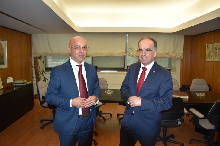 A ricevere ufficialmente il Presidente d’Albania, insieme a Massimo Fedele e Riccardo Giacoia, c’era come delegato del Presidente della Regione l’assessore Gianluca Gallo, che ha sempre seguito in prima persona e in presa diretta le vicende della grande comunità arberesche di Calabria, e naturalmente il sindaco della città di Cosenza avvocato Franz Caruso. Presente all’incontro c’era anche Ernesto Madeo Commissario della Fondazione Comunità Arbëreshe della Regione, che ha portato al Presidente d’Albania il saluto ufficiale di tutta la sua comunità.