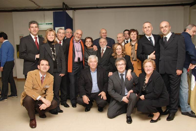 Al centro della foto di tanti anni fa la festa dedicata ad Antonio Minasi rientrato in Sede proprio per incontrare i suoi vecchi compagni di lavoro. Il primo a destra nella foto, in piedi accnto a Pino Nano, è un giovanissimo Massimo Fedele.