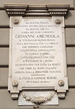 È bello riproporre qui oggi, soprattutto per le nuove generazioni, il profilo che ne fa la Treccani sulla sua Enciclopedia Universale e che ha già fatto il giro del mondo: “Nato a Napoli nel 1882, morto a Cannes nel 1926. Giornalista e docente di filosofia, volontario e decorato nella prima guerra mondiale, fu avverso allo squadrismo e all’illegalismo fascisti, e divenne fra i demo-liberali uno dei capi dell’opposizione in Parlamento. Costretto all’esilio, morì in Francia per le conseguenze di una delle tre aggressioni subite dai fascisti”.