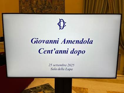 Giovedì 25 settembre 2025 a Palazzo Montecitorio, Sala della Lupa, il Presidente della Camera Lorenzo Fontana ricorda la vita la storia e il ruolo che ebbe Giovanni Amendola a un secolo dalla sua scomparsa.