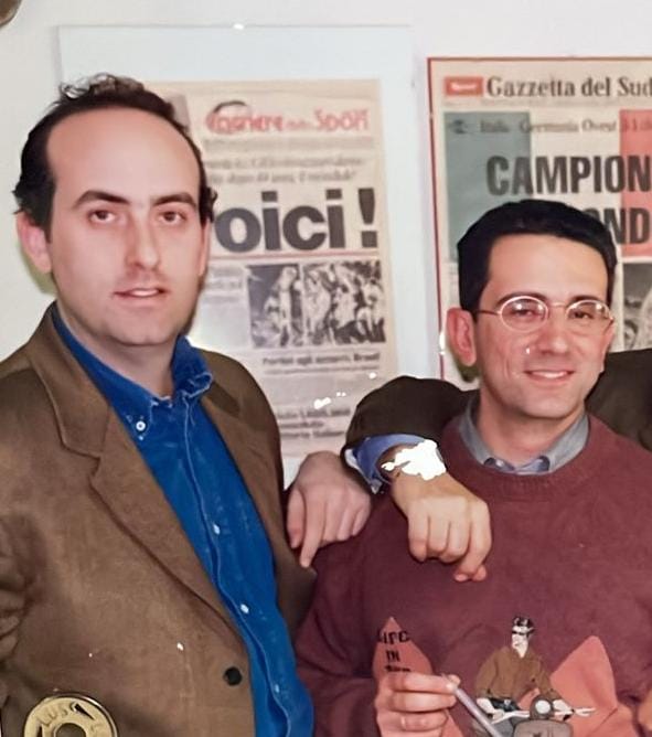 Alfonso Samengo e Riccardo Giacoia 30 anni fa fotografati nella loro stanza della redazione giornalistica della RAI calabrese. Della serie “Non ci si perde mai”.