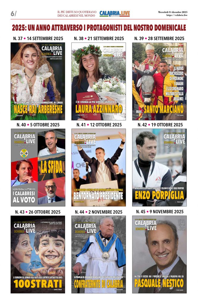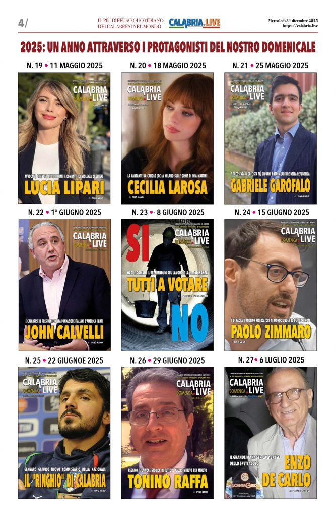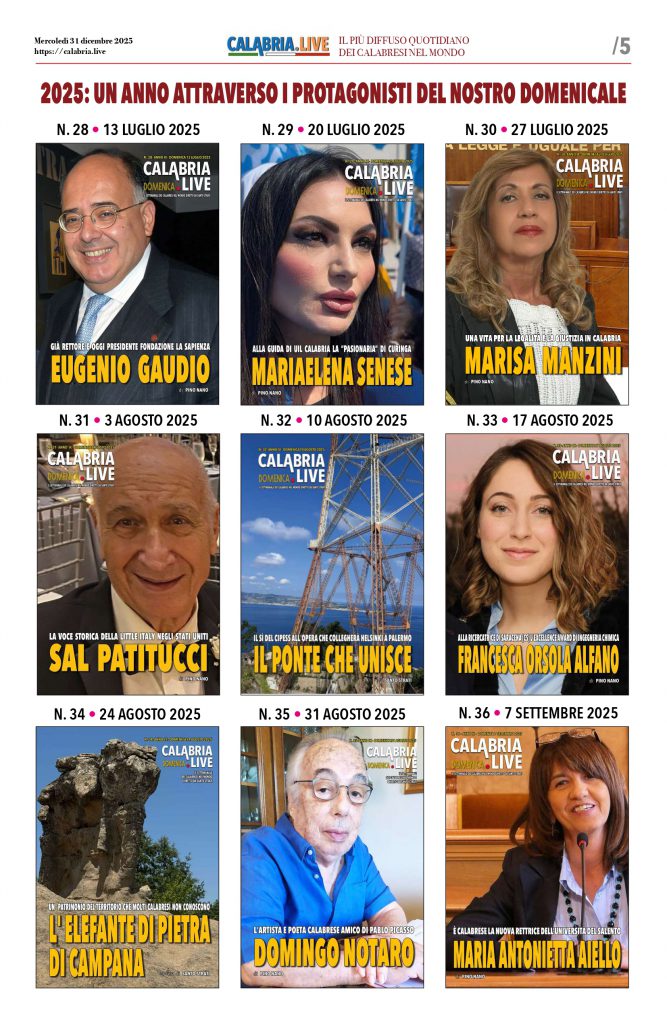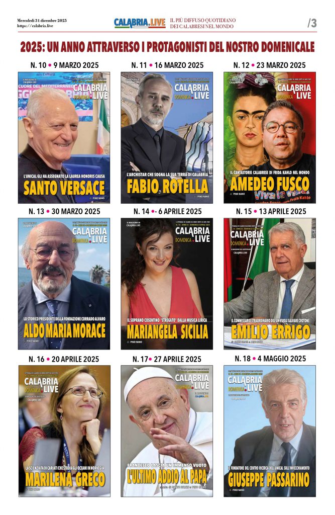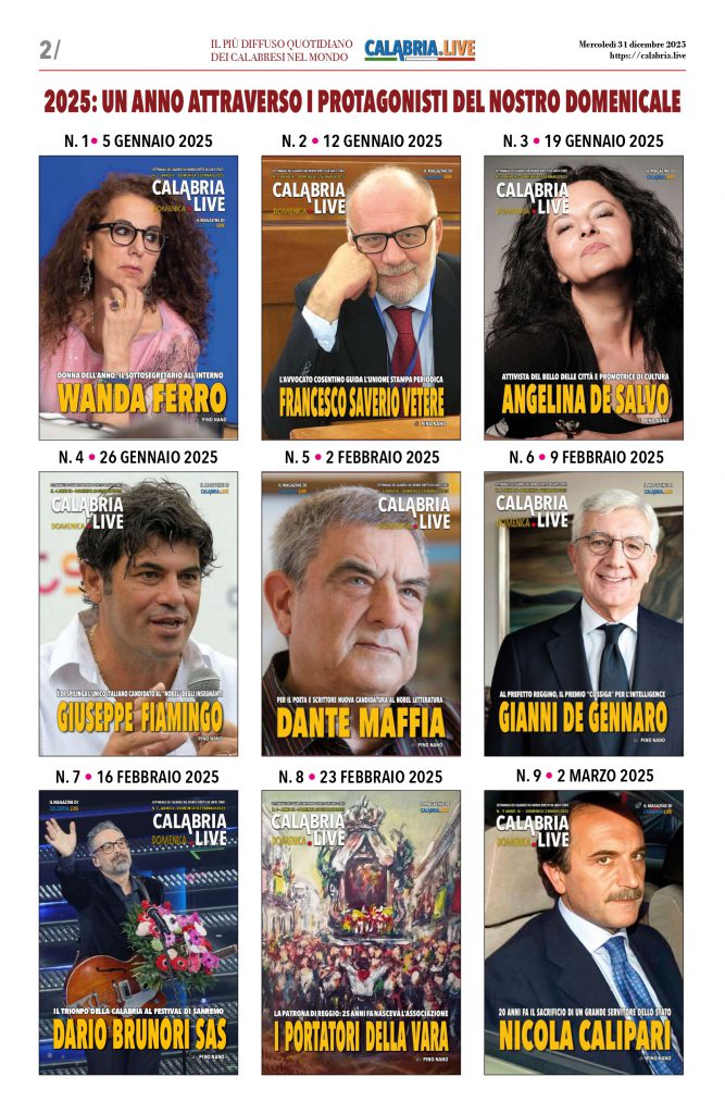 Queste sono le Cover scrtte da Pino Nano e che Calabria Live ha dedicato nel 2025 a Storie di Calabresi eccellenti, gran parte dei quali sono poi diventate le Storie di “Made in Calabria”, il primo volume di una nuova serie sulla Calabria che vive opera e si muove anche oltre i confini nazionali.