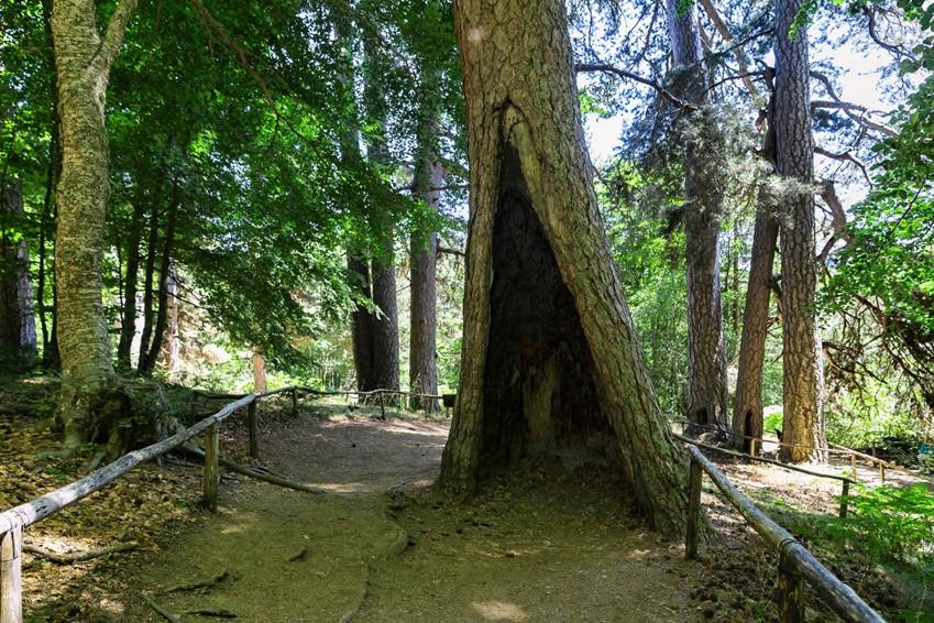 Si tratta infatti, di una pineta monumentale che ospita cinquantotto esemplari di pino laricio e alcuni aceri montani, con alberi che raggiungono i quarantacinquemetri di altezza e superano i trecentocinquanta anni di vita. Queste piante ormai sono ritenute le ultime testimonianze della leggendaria Silva Brutia, l’immensa foresta che un tempo copriva l’intero altopiano della Sila.