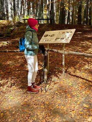 “I tronchi caduti non vengono rimossi per studiare l’evoluzione naturale del bosco, e si possono osservare nel percorso di visita. Sono alcuni esemplari sradicati dalla neve nell’inverno del 1981”.